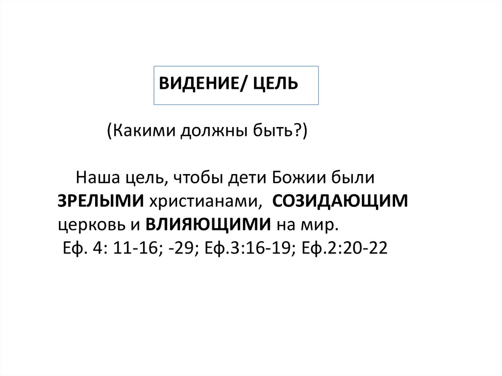 Наша цель, чтобы дети Божии были ЗРЕЛЫМИ христианами,