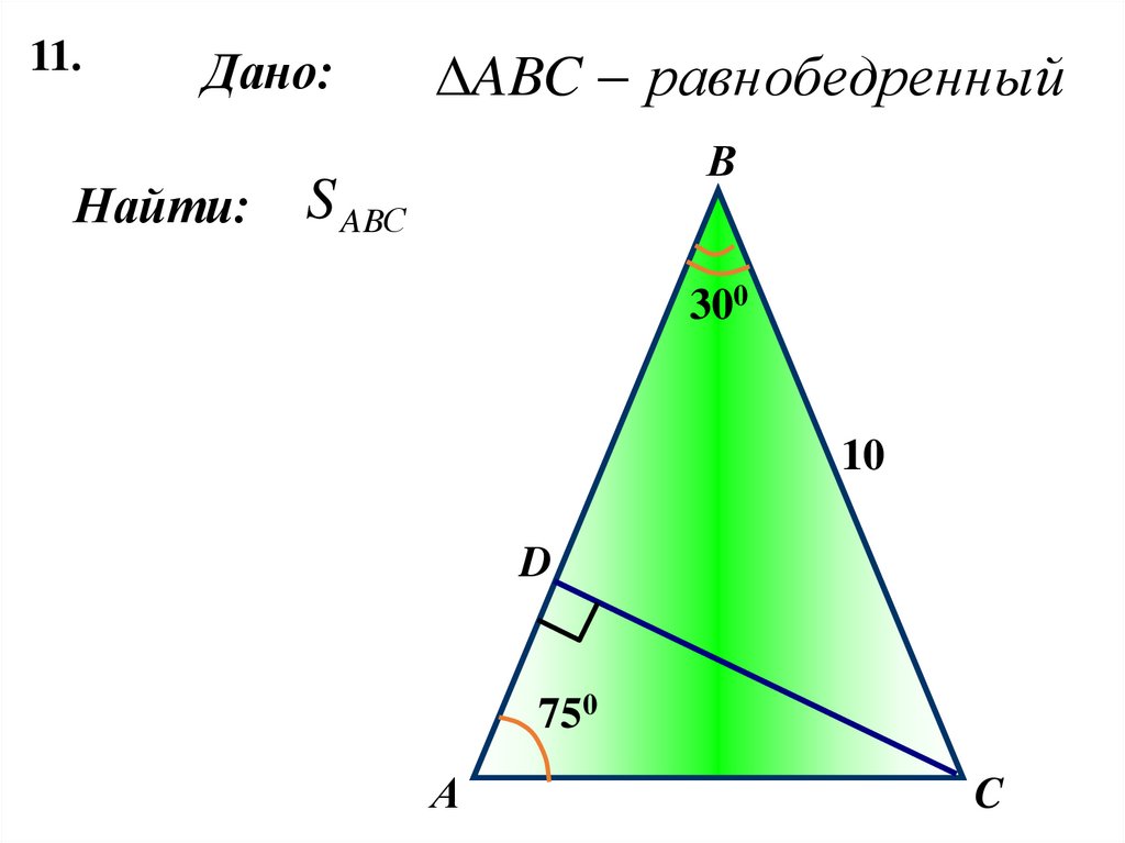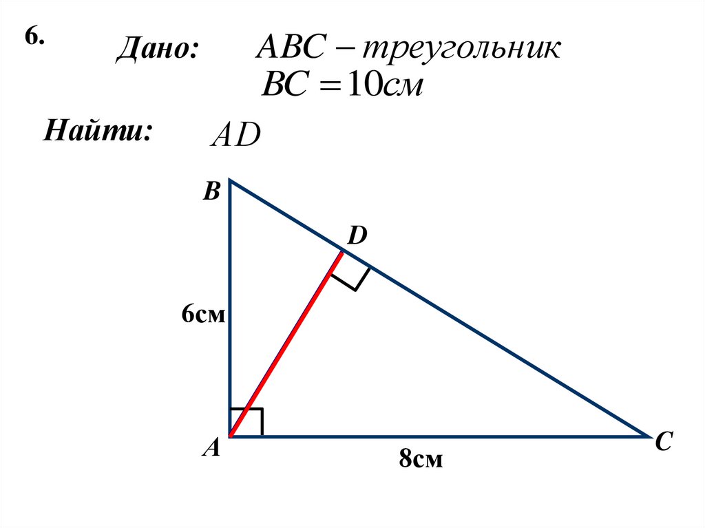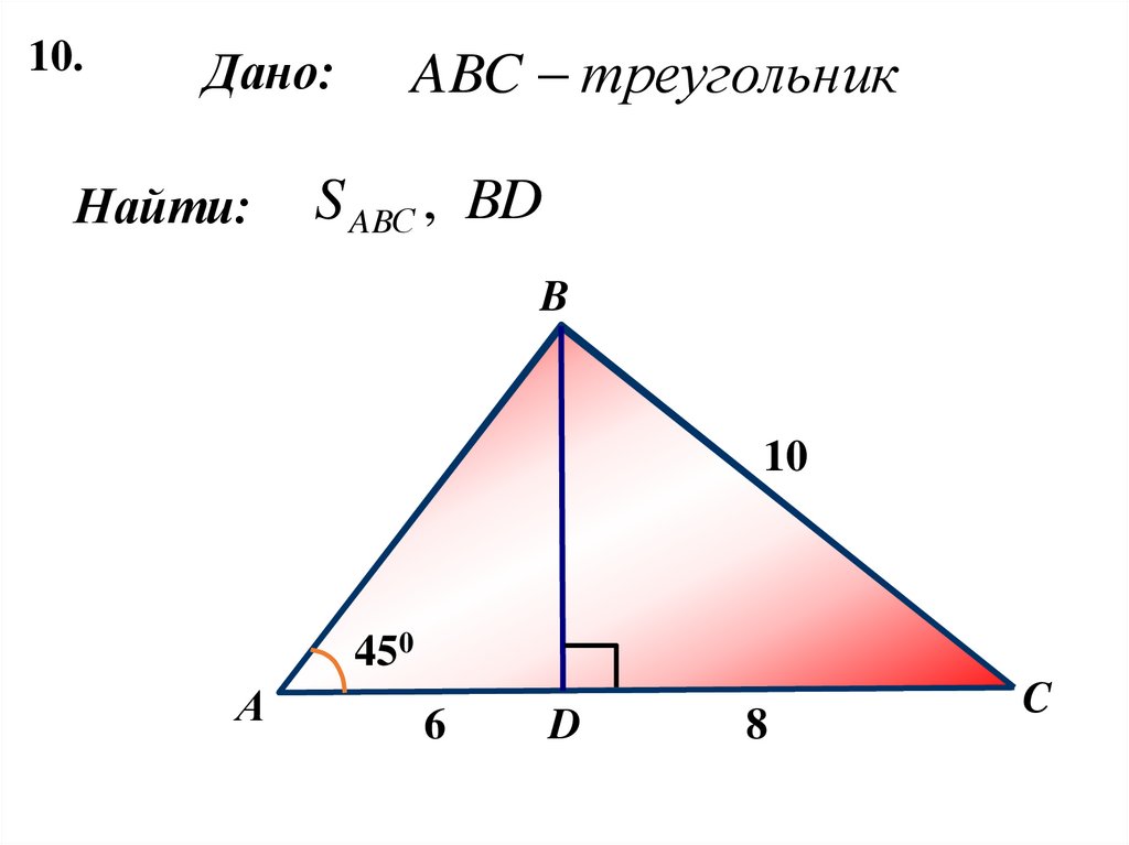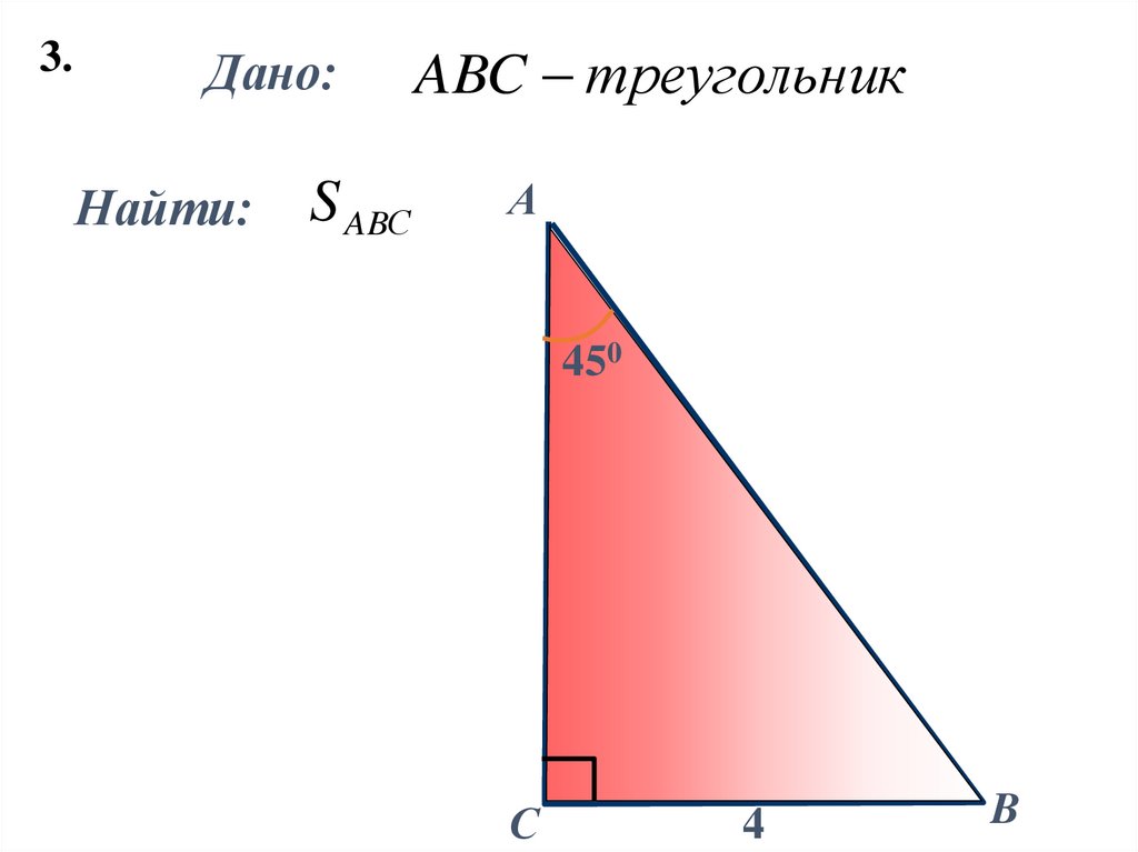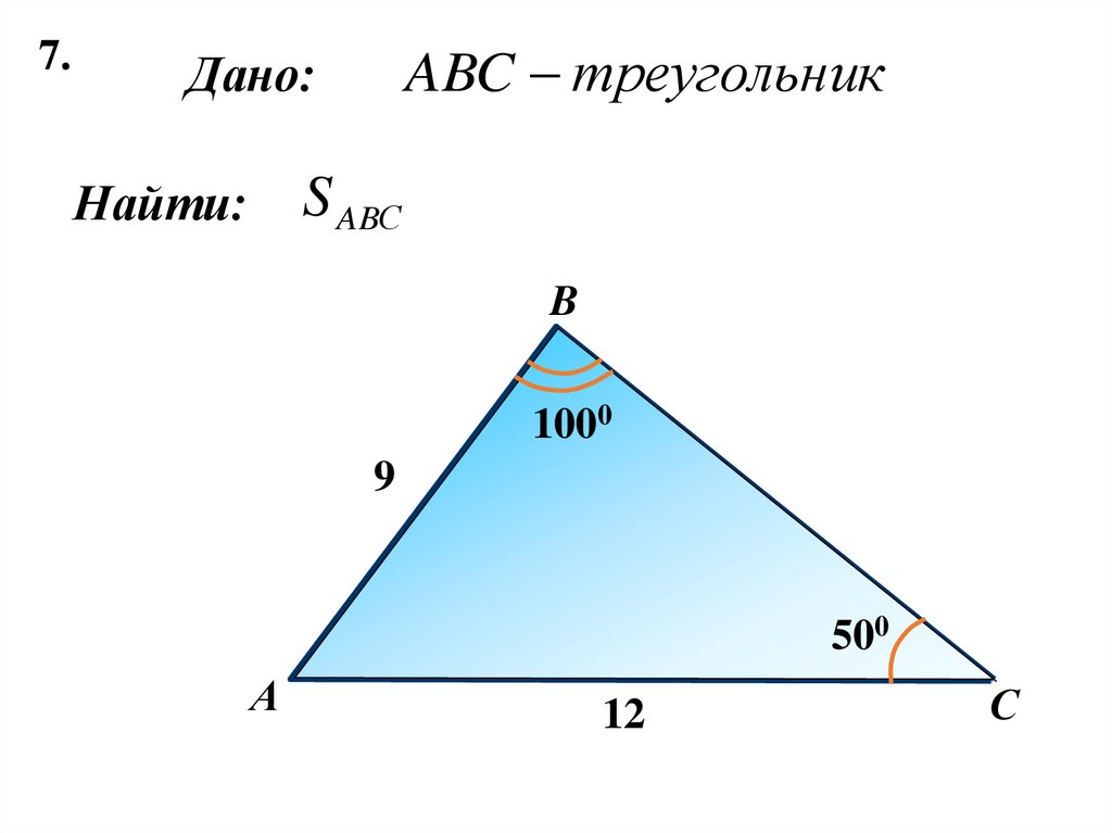 4. Теорема. Площадь треугольника равна половине произведения его основания на высоту.