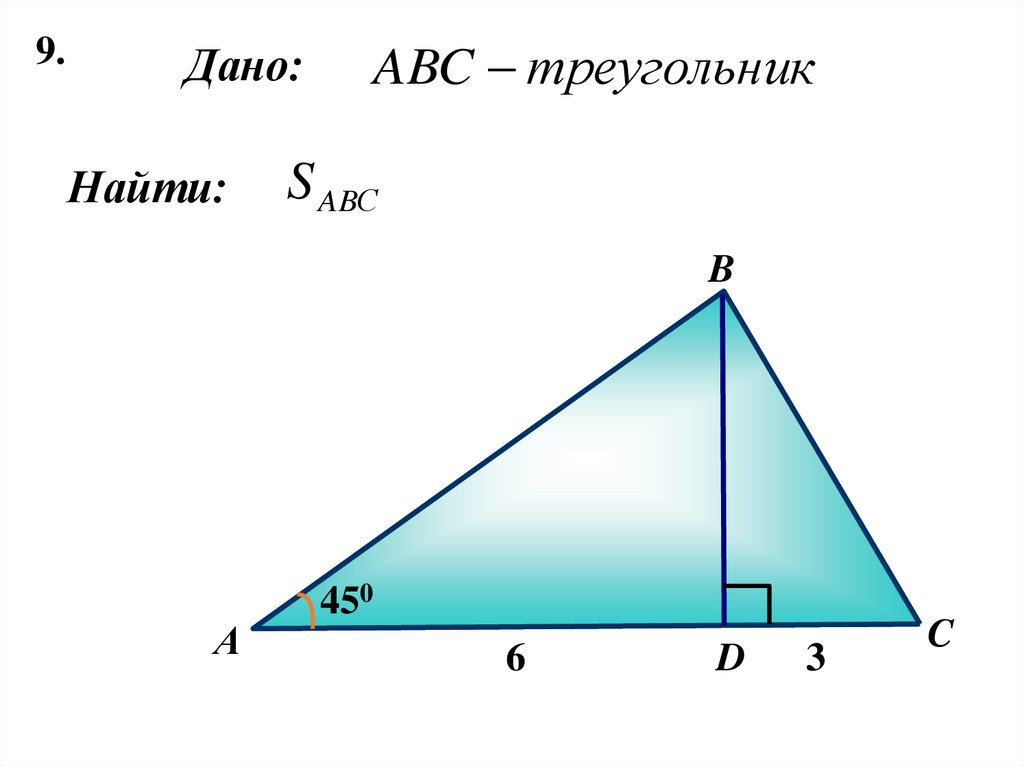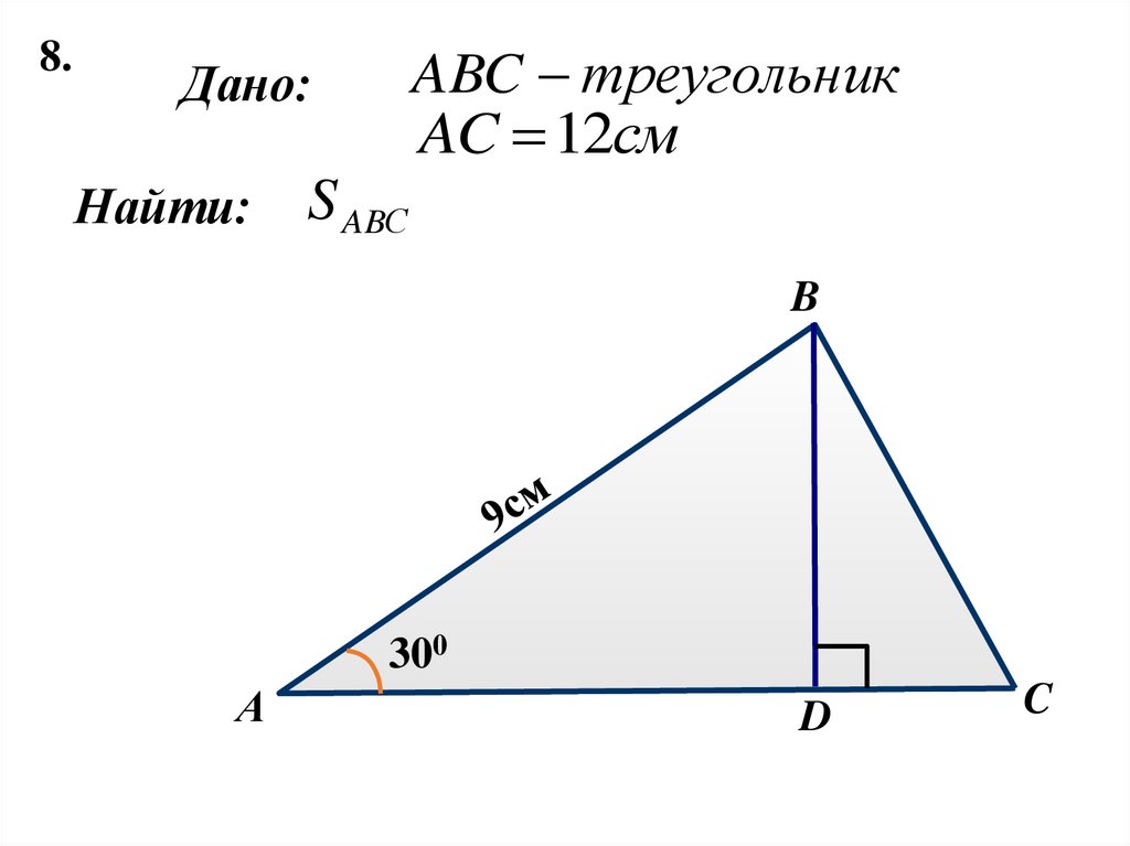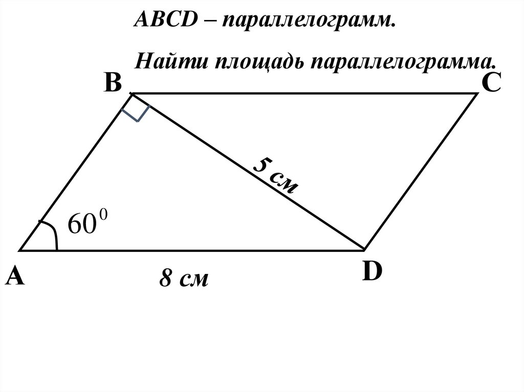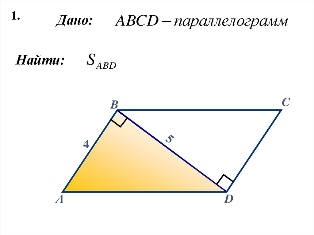 SАВС= ½ SАBCD, т.е. S = = ½ АВ СН.
