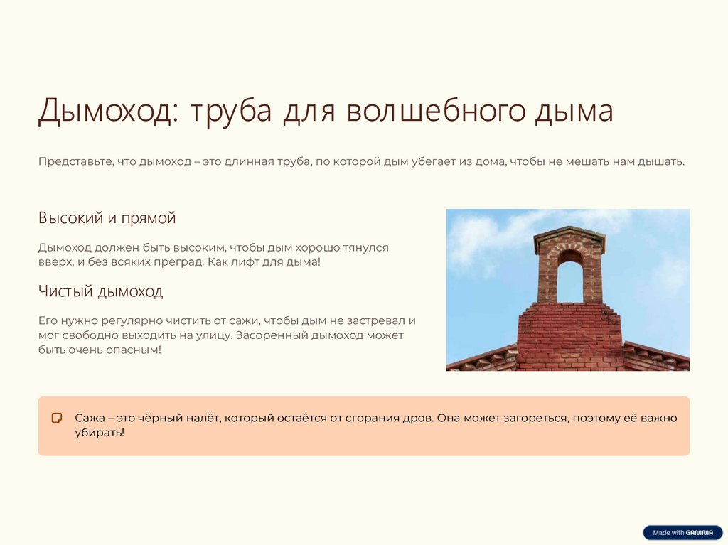 Дымоход: труба для волшебного дымаПредставьте, что дымоход – это длинная труба, по которой дым убегает из дома, чтобы не мешать нам дышать.