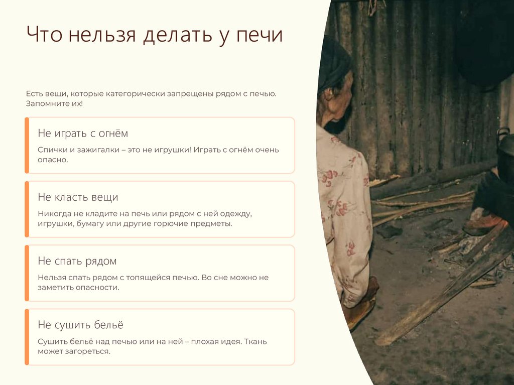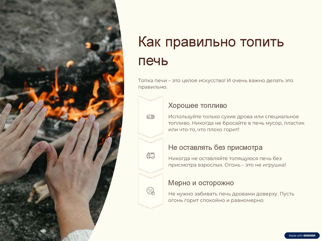 Безопасность во время топкиПока печь горит, будьте особенно внимательны!