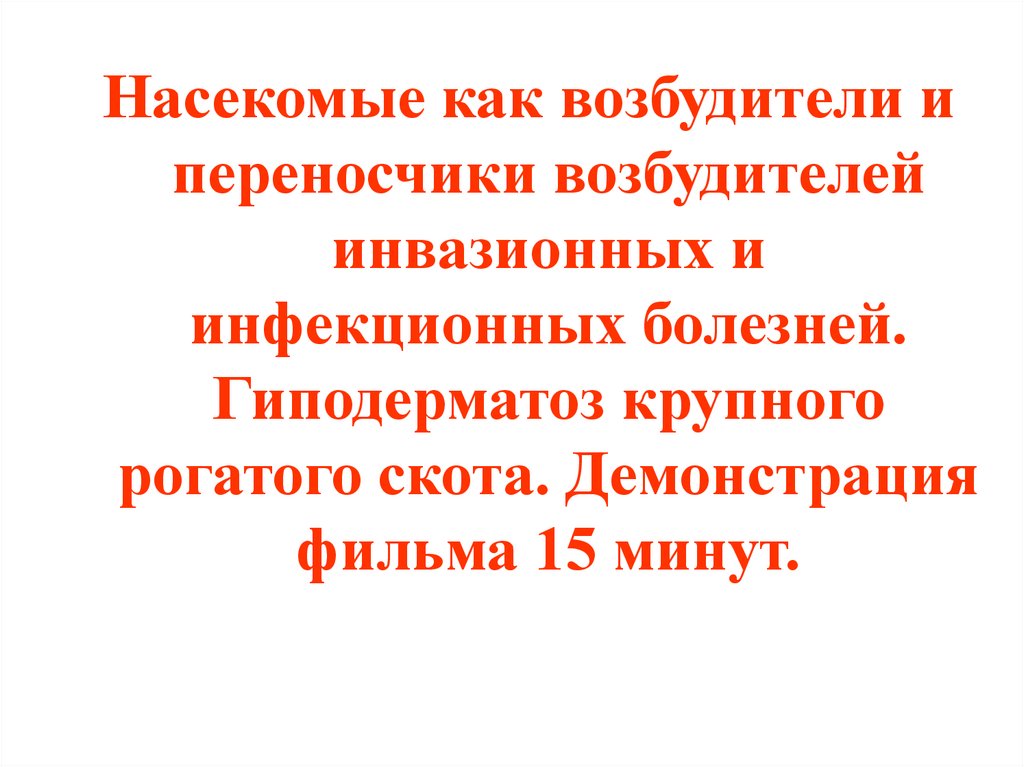 3. Насекомые как возбудители и переносчики возбудителей инвазионных и инфекционных болезней. Гиподерматоз крупного рогатого скота. Демонс