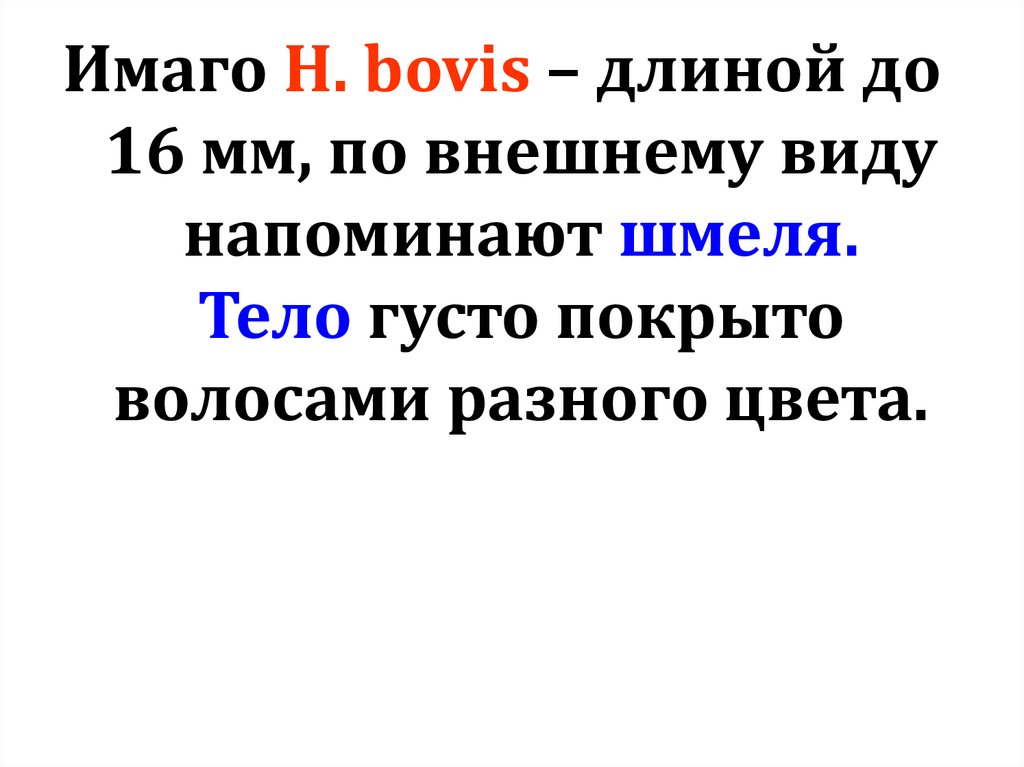 Имаго Н. bovis – длиной до16 мм, по внешнему виду