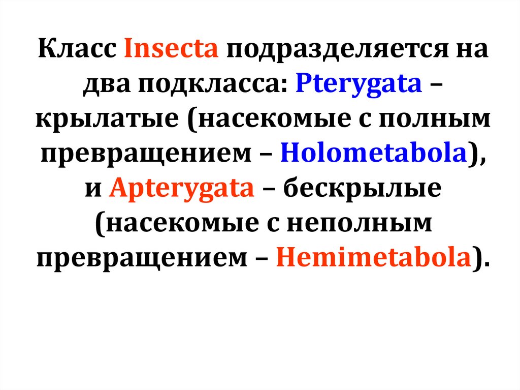 Класс Insecta подразделяется надва подкласса: Pterygata –