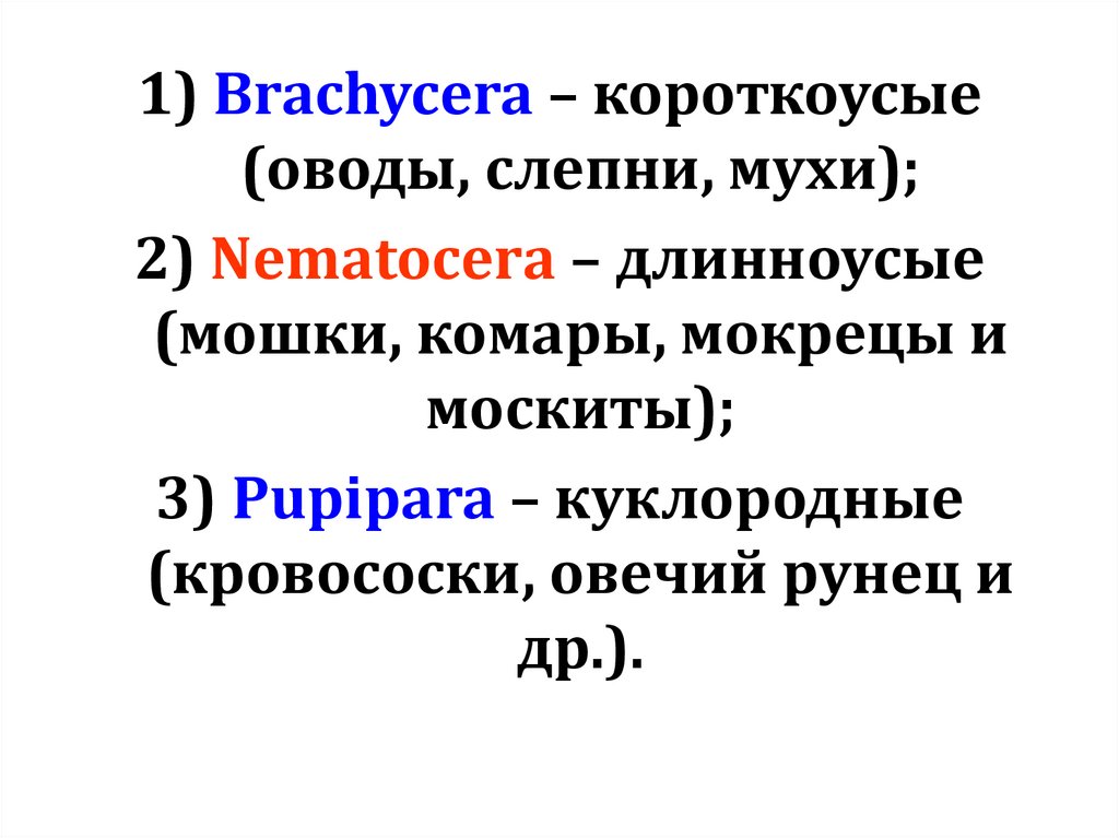 1) Brachycera – короткоусые(оводы, слепни, мухи);