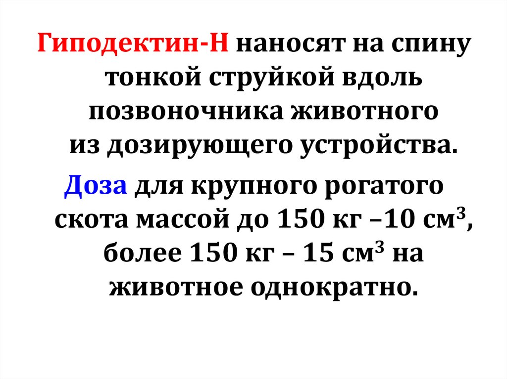 Гиподектин-Н наносят на спинутонкой струйкой вдоль