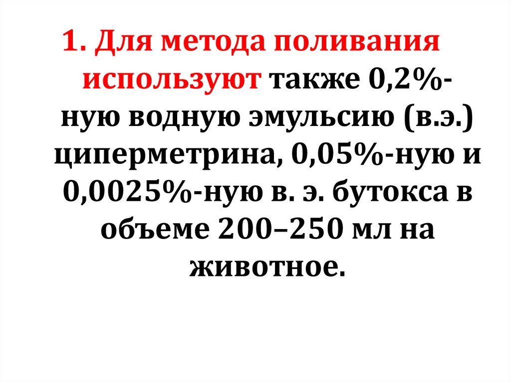 1. Для метода поливанияиспользуют также 0,2%ную водную эмульсию (в.э.)