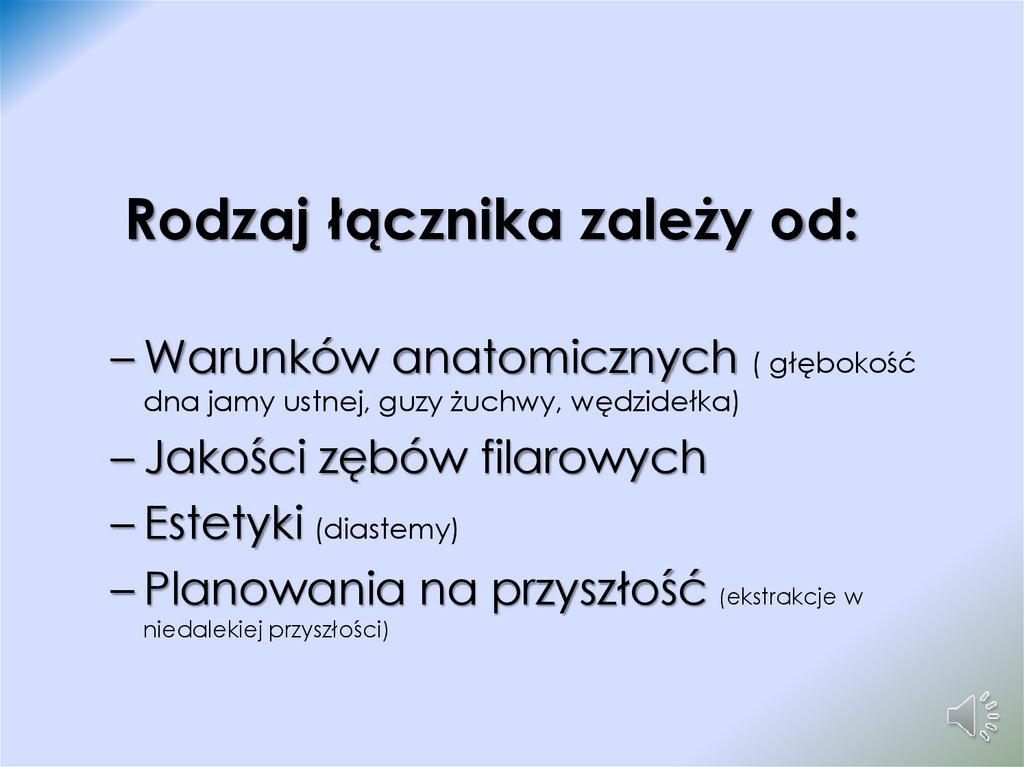 Rodzaj łącznika zależy od:– Warunków anatomicznych ( głębokość