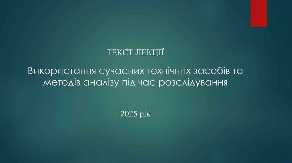1. ТЕКСТ ЛЕКЦІЇ Використання сучасних технічних засобів та методів аналізу під час розслідування 2025 рік