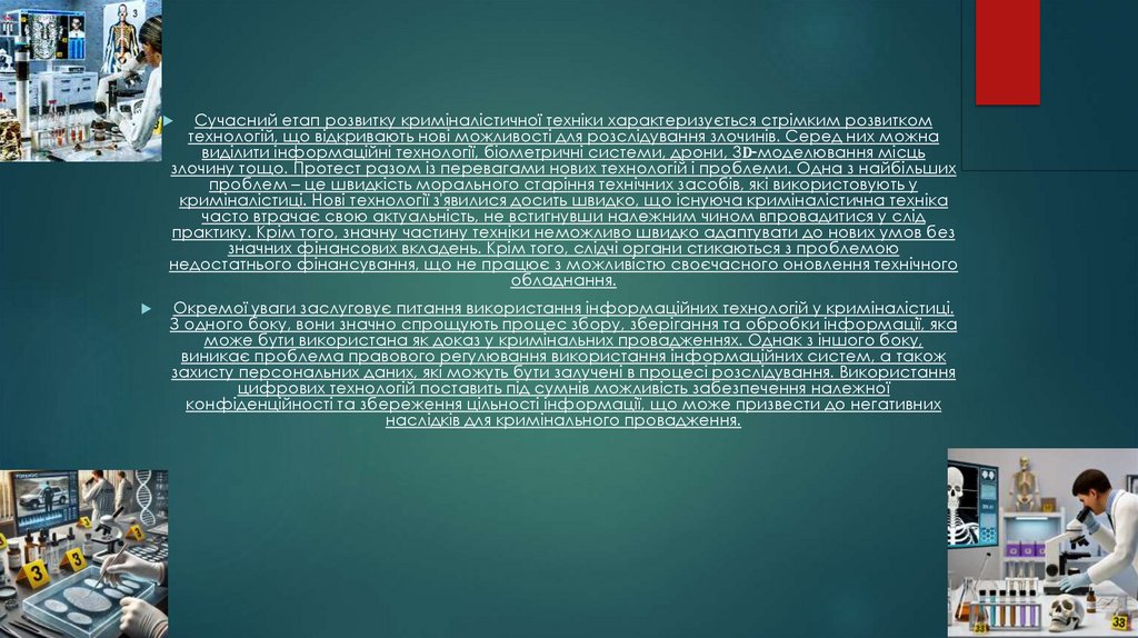 криміналістиці. Нові технології з'явилися досить швидко, що існуюча криміналістична техніка