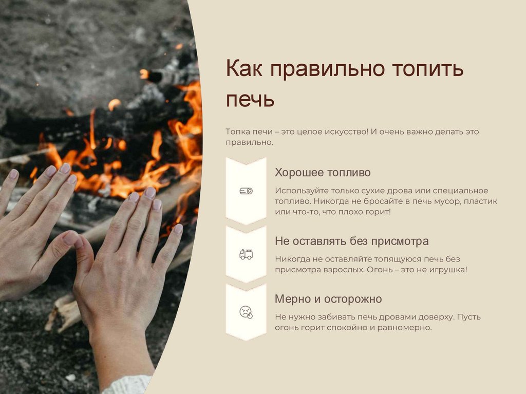 Пока печь горит, будьте особенно внимательны!