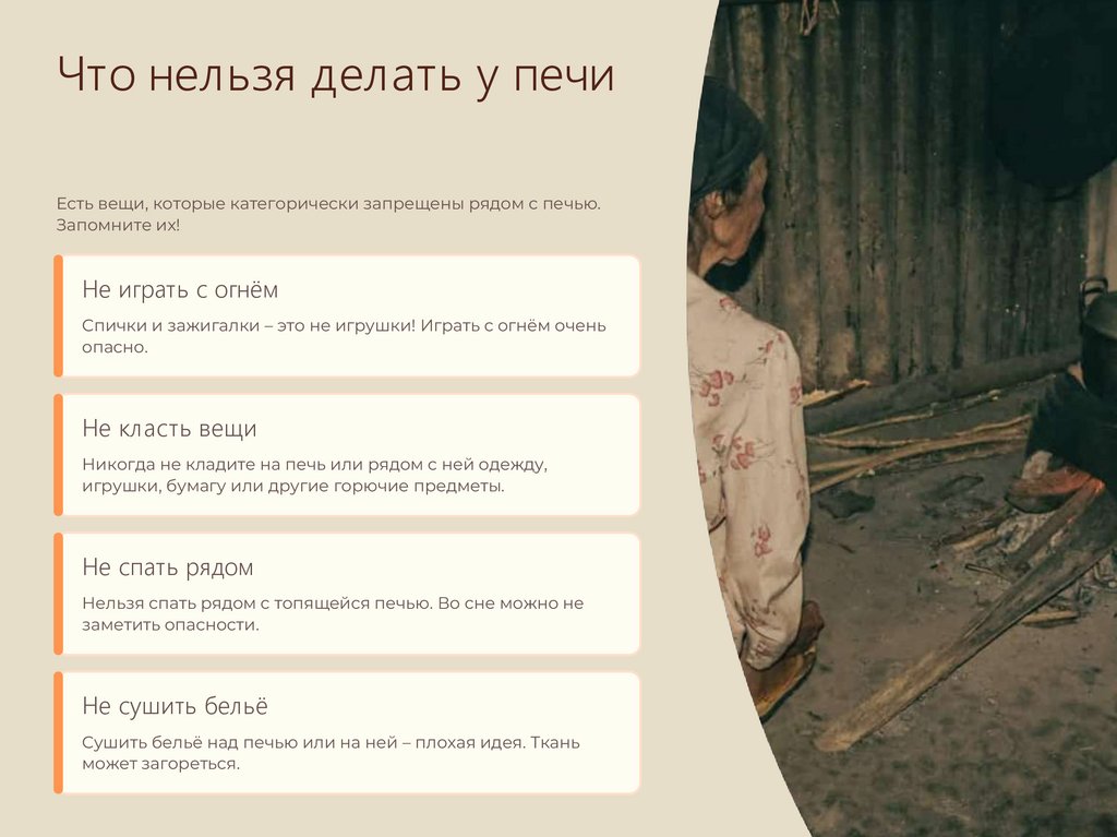 Что нельзя делать у печиЕсть вещи, которые категорически запрещены рядом с печью.