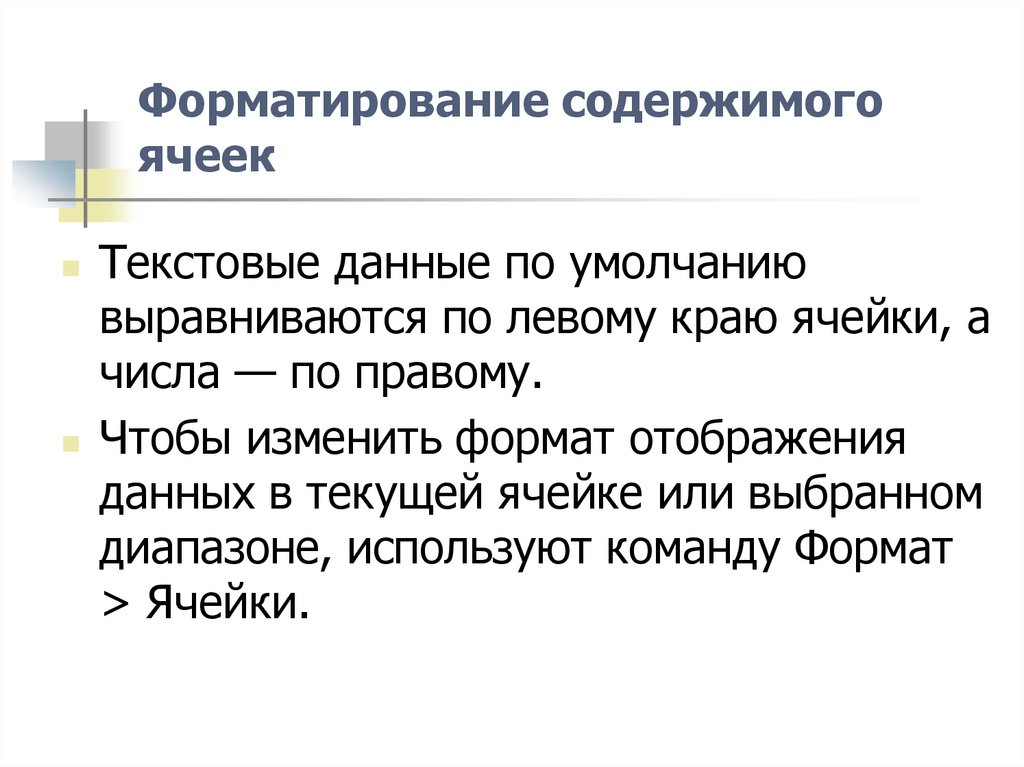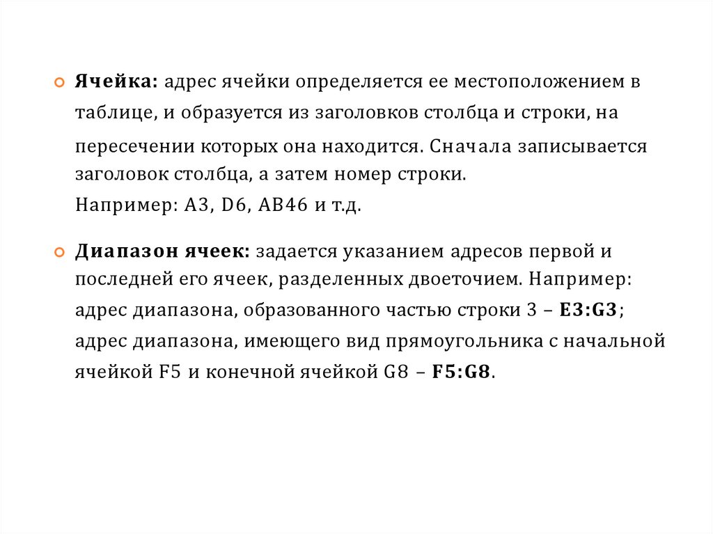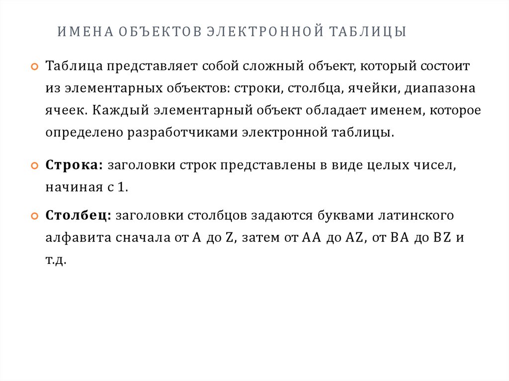 Ячейка – элементарный объект электронной таблицы,расположенный на пересечении столбца и строки.
