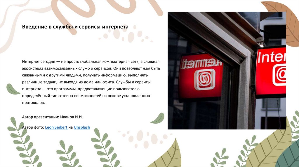 Введение в службы и сервисы интернетаИнтернет сегодня — не просто глобальная компьютерная сеть, а сложная