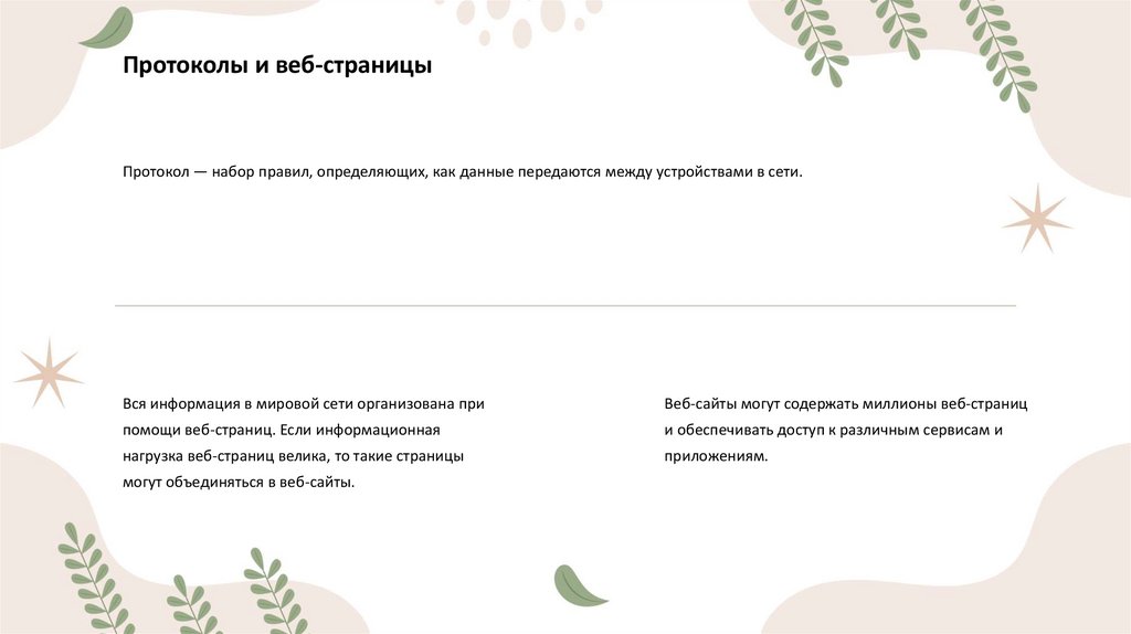 Протоколы и веб-страницыПротокол — набор правил, определяющих, как данные передаются между устройствами в сети.