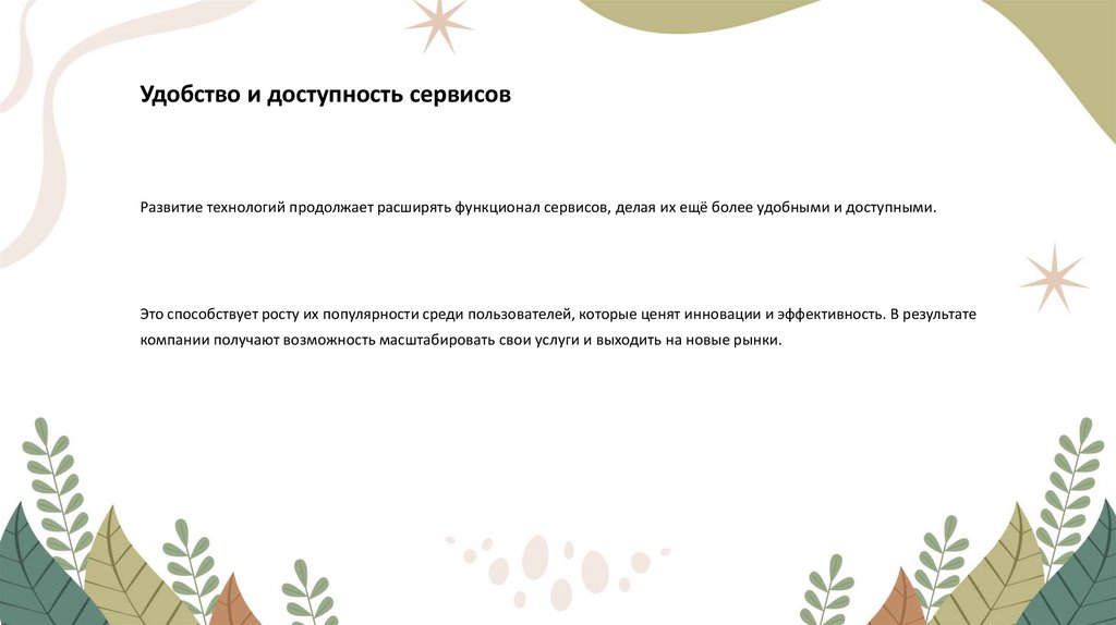 Удобство и доступность сервисовРазвитие технологий продолжает расширять функционал сервисов, делая их ещё более удобными и доступными.