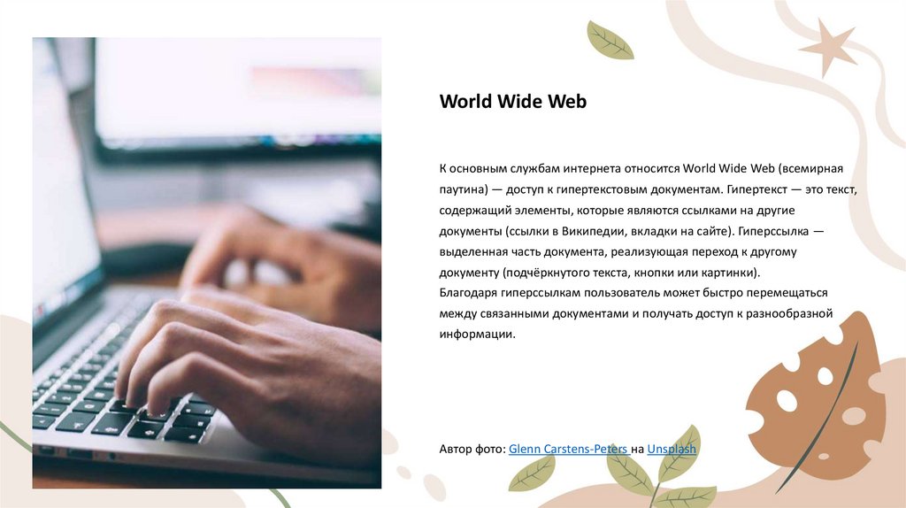 World Wide WebК основным службам интернета относится World Wide Web (всемирная