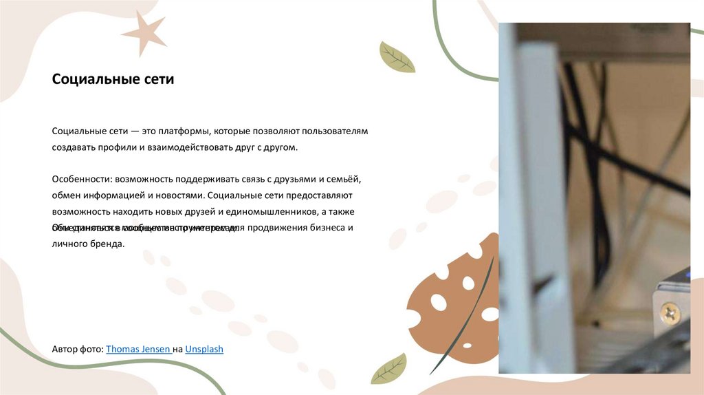 Социальные сетиСоциальные сети — это платформы, которые позволяют пользователям
