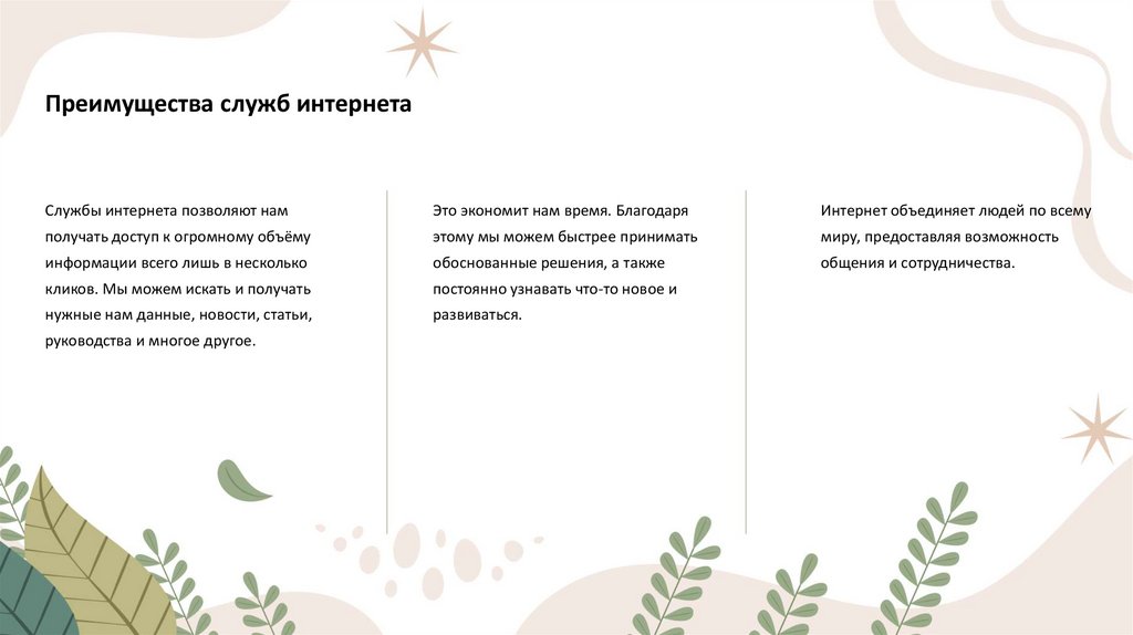 Преимущества служб интернетаСлужбы интернета позволяют нам