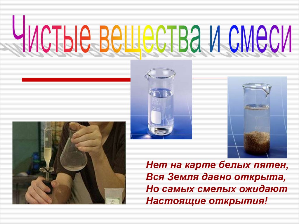 4. Тема урока: Чистые вещества и смеси Способы разделения смесей