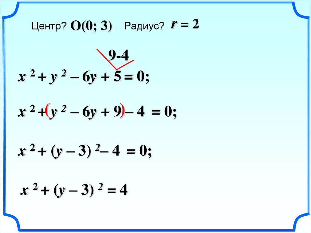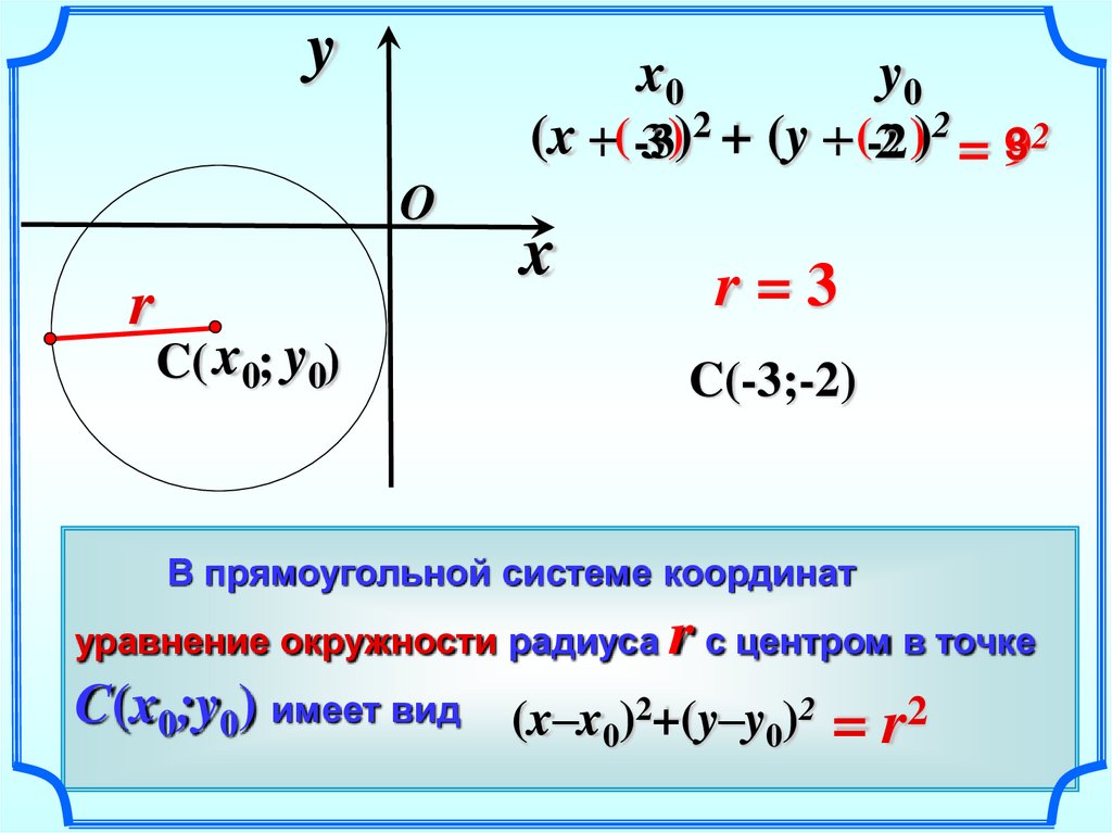 (x – x0)2 + (y – (y20))2 = 9r 2