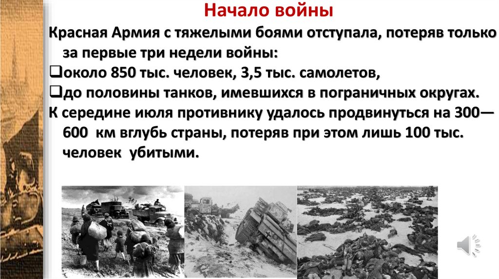 Начало войныКрасная Армия с тяжелыми боями отступала, потеряв только