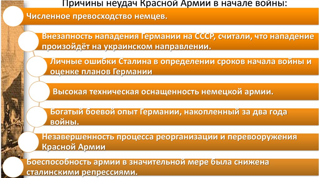 Причины неудач Красной Армии в начале войны:Численное превосходство немцев.