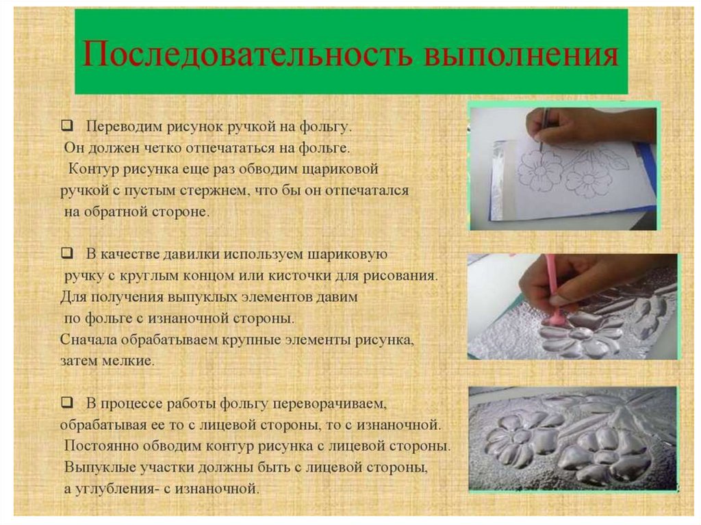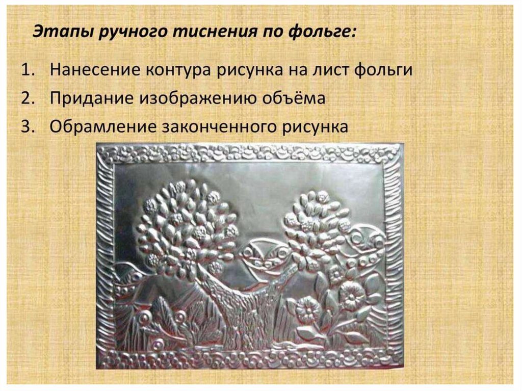 барельефов методом тиснения по фольге. Рельефами по фольге