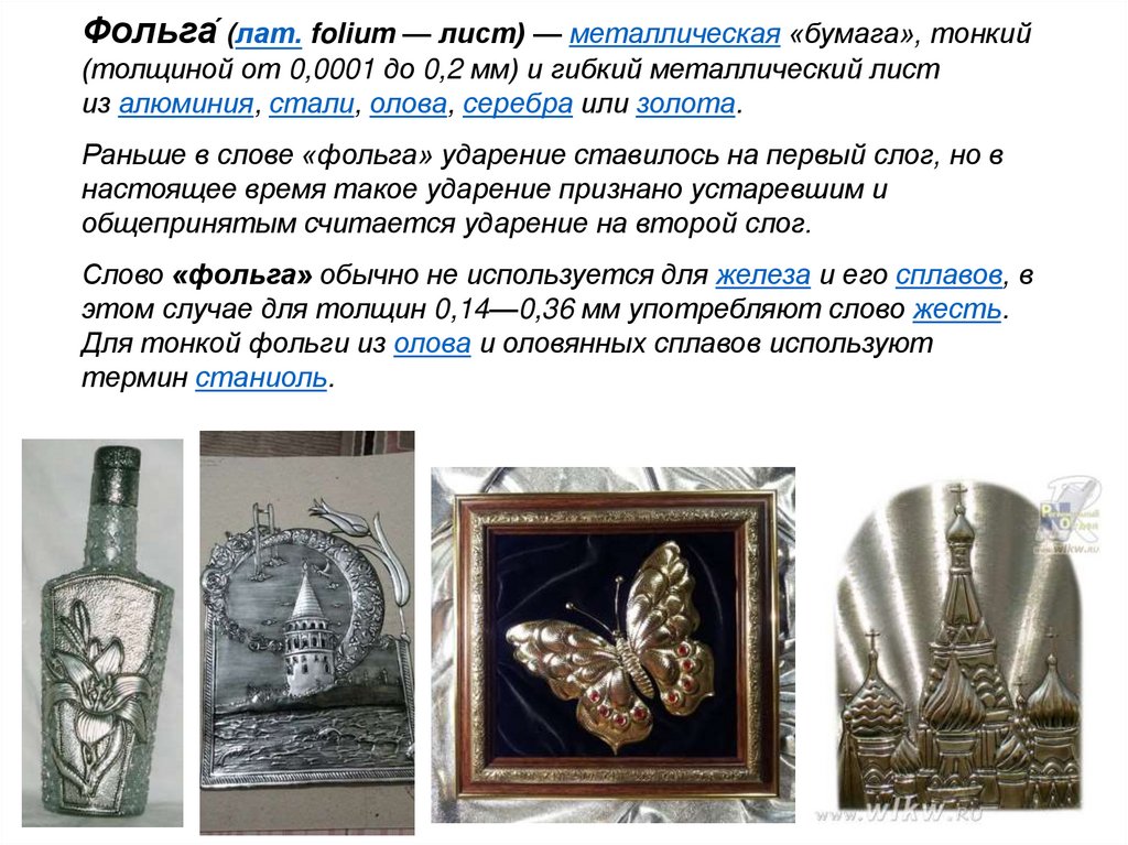 Фольга́ (лат. folium — лист) — металлическая «бумага», тонкий(толщиной от 0,0001 до 0,2 мм) и гибкий металлический лист