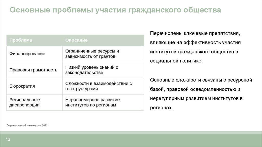 Основные проблемы участия гражданского обществаПеречислены ключевые препятствия,
