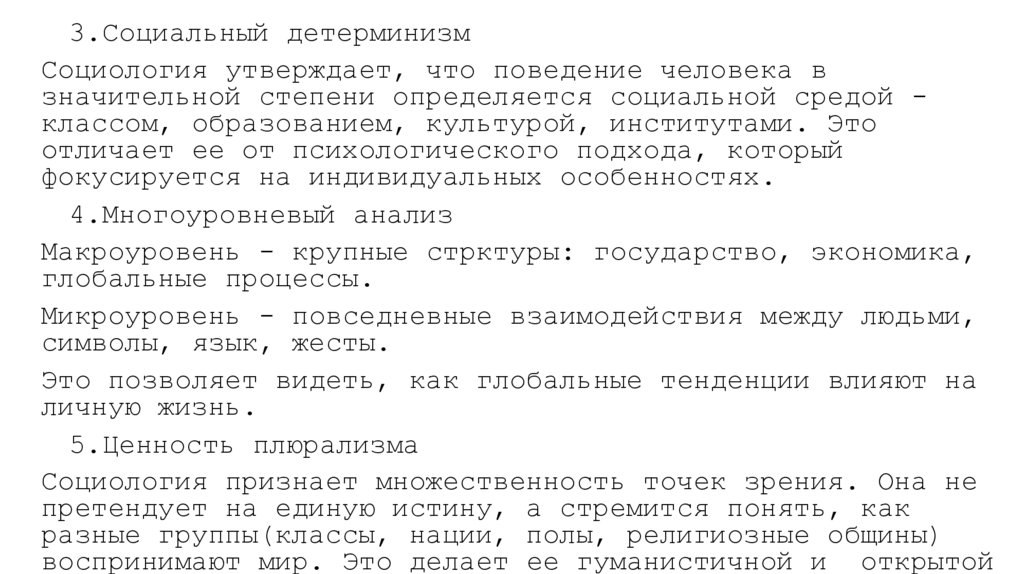3.Социальный детерминизмСоциология утверждает, что поведение человека в
