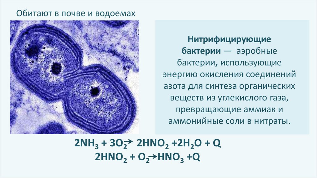 Обитают в почве и водоемахНитрифицирующие