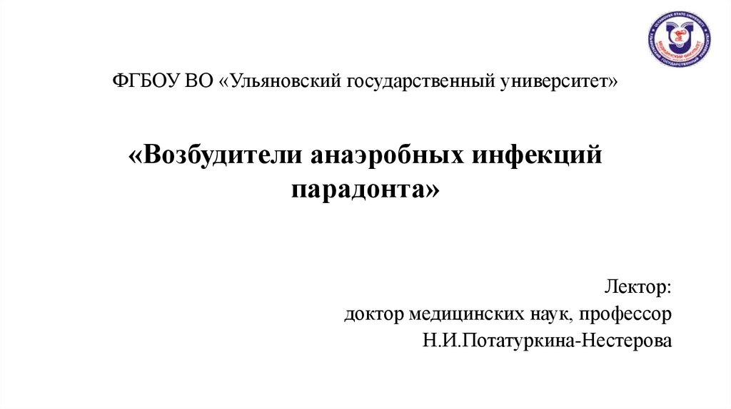 1. ФГБОУ ВО «Ульяновский государственный университет» «Возбудители анаэробных инфекций парадонта»