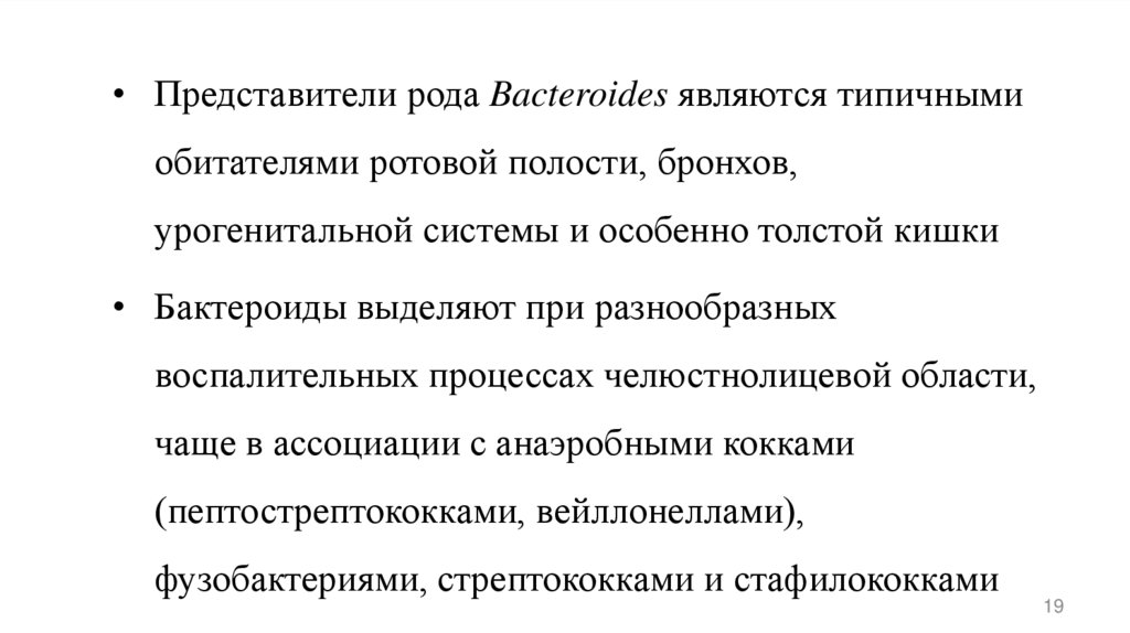 • Peptostreptococcus spp. высеваются также при микробиологических