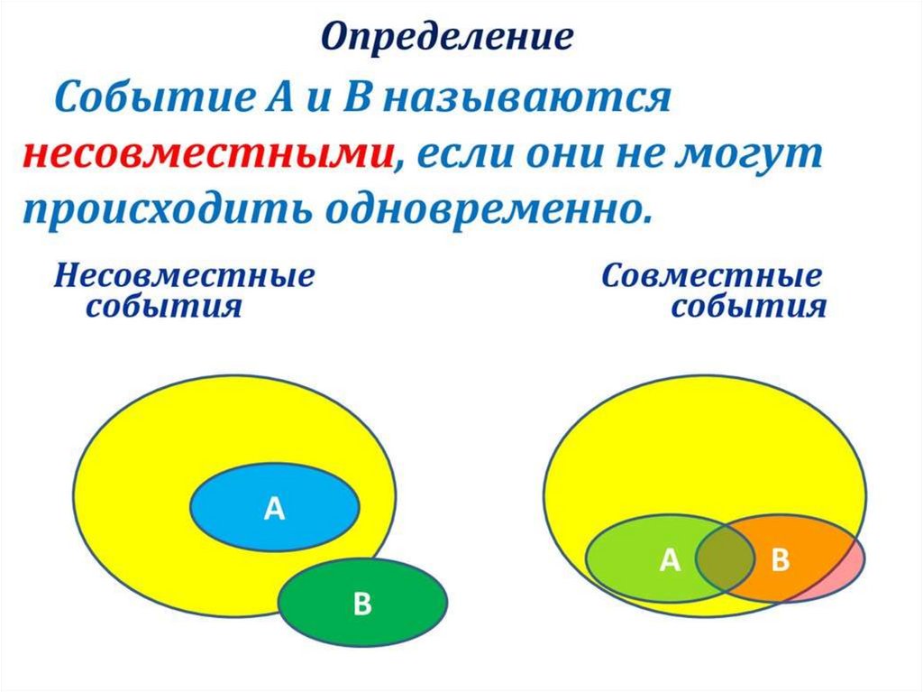 Несовместные события – это события, которые не наступают в одном