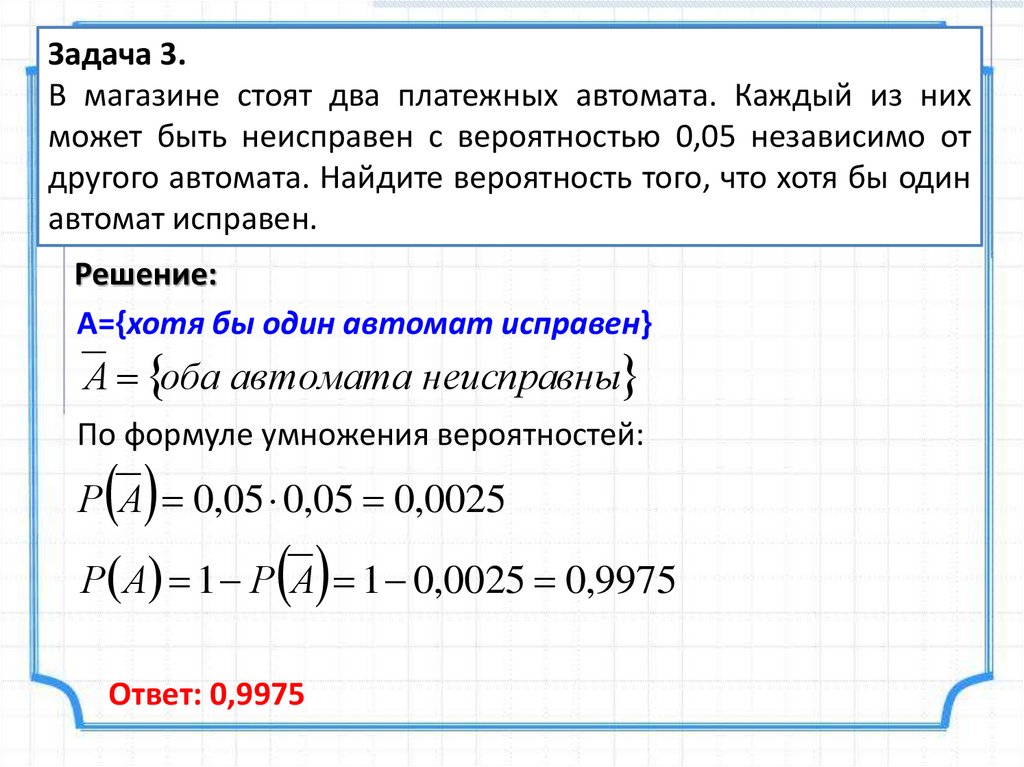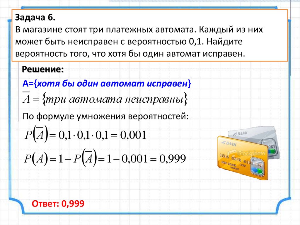 Задача 6.В магазине стоят три платежных автомата. Каждый из них