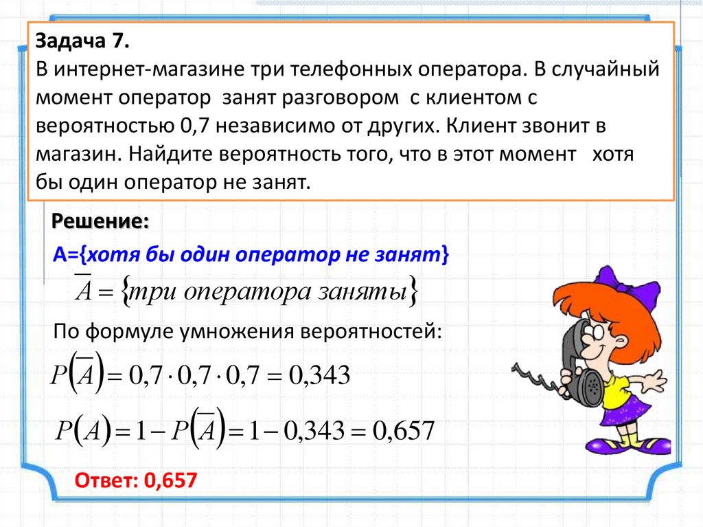 Задача 7.В интернет-магазине три телефонных оператора. В случайный