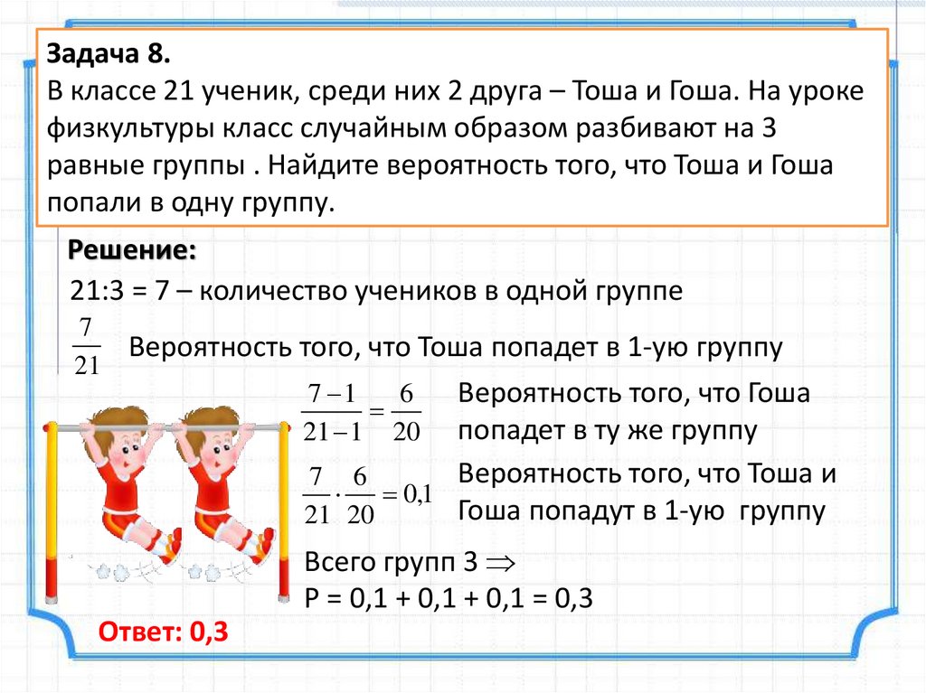 Задача 8.В классе 21 ученик, среди них 2 друга – Тоша и Гоша. На уроке