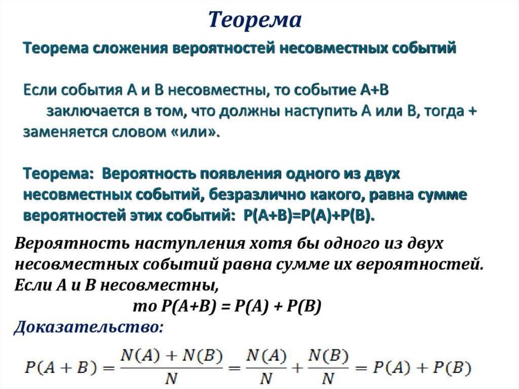 Формула сложения для несовместных событий: