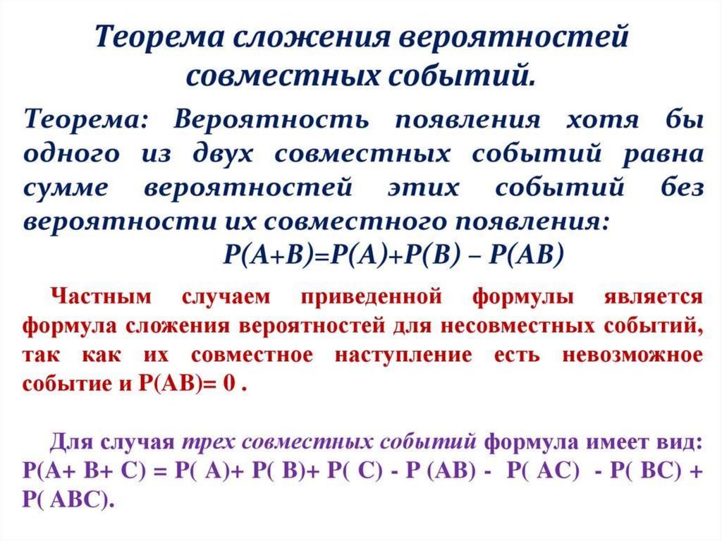 Формула сложения вероятностей для совместных событий: