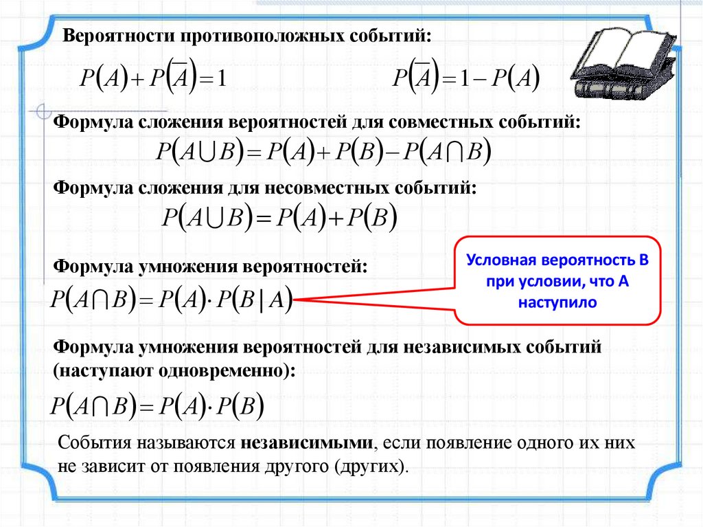 Формула умножения вероятностей для независимых событий