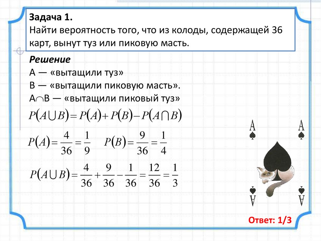 Задача 1.Найти вероятность того, что из колоды, содержащей 36