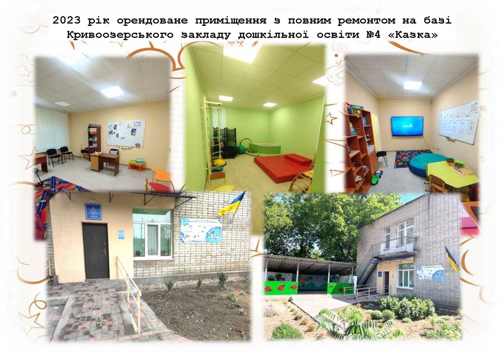 2023 рік орендоване приміщення з повним ремонтом на базіКривоозерського закладу дошкільної освіти №4 «Казка»