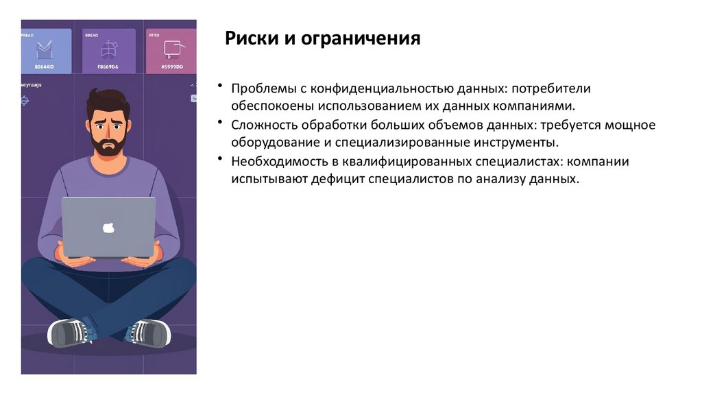 Риски и ограничения• Проблемы с конфиденциальностью данных: потребители