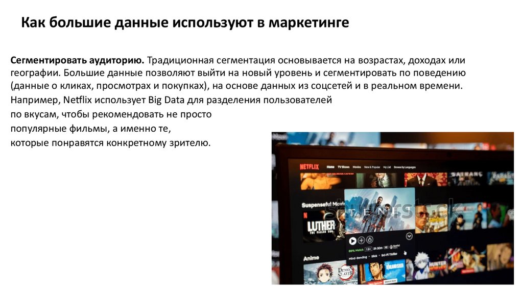 Как большие данные используют в маркетингеСегментировать аудиторию. Традиционная сегментация основывается на возрастах, доходах или