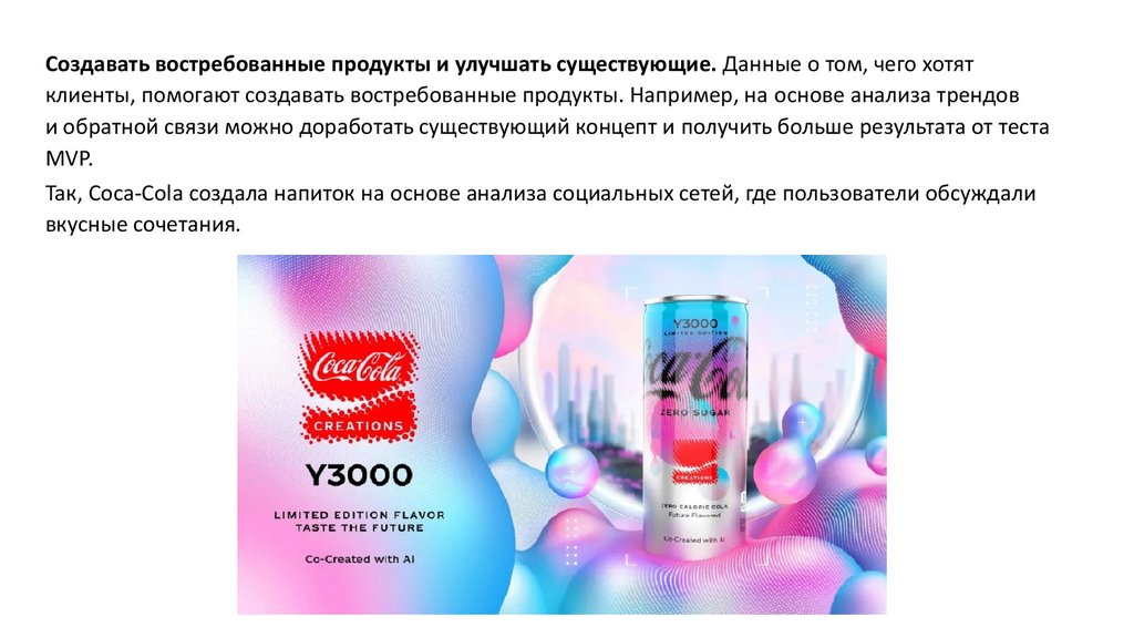 Так, Coca-Cola создала напиток на основе анализа социальных сетей, где пользователи обсуждали