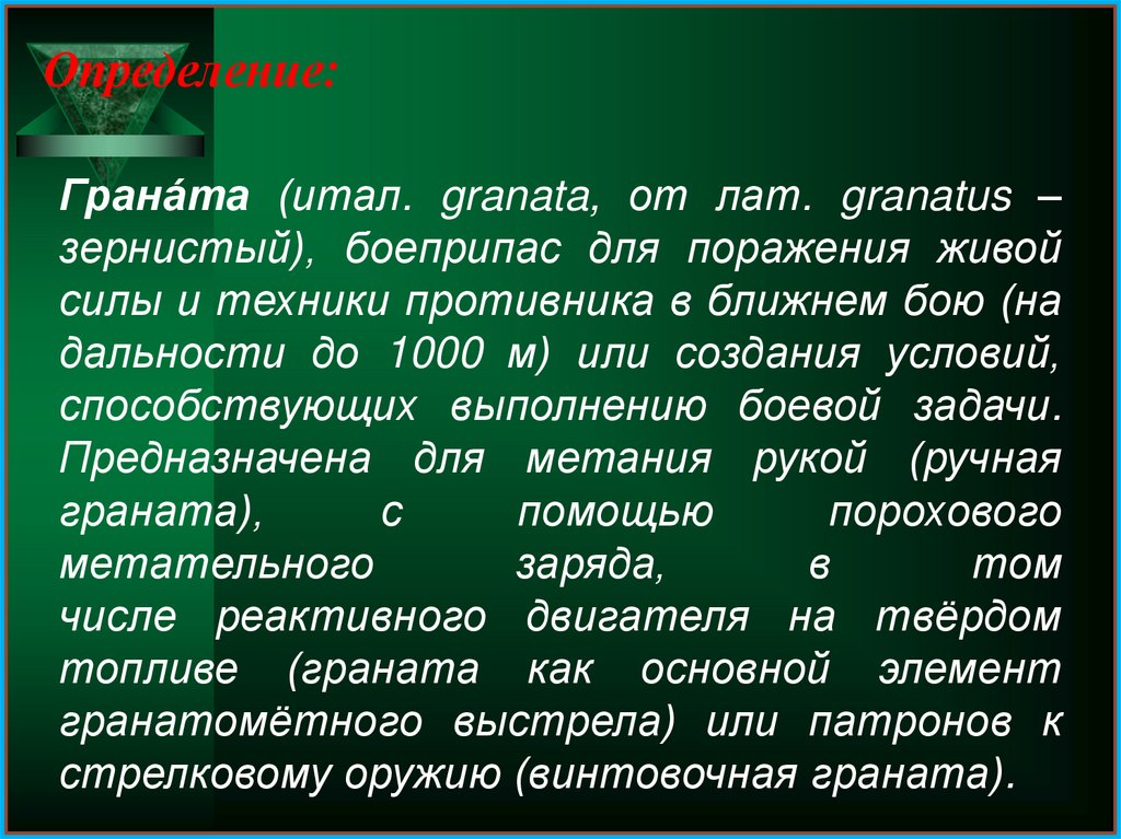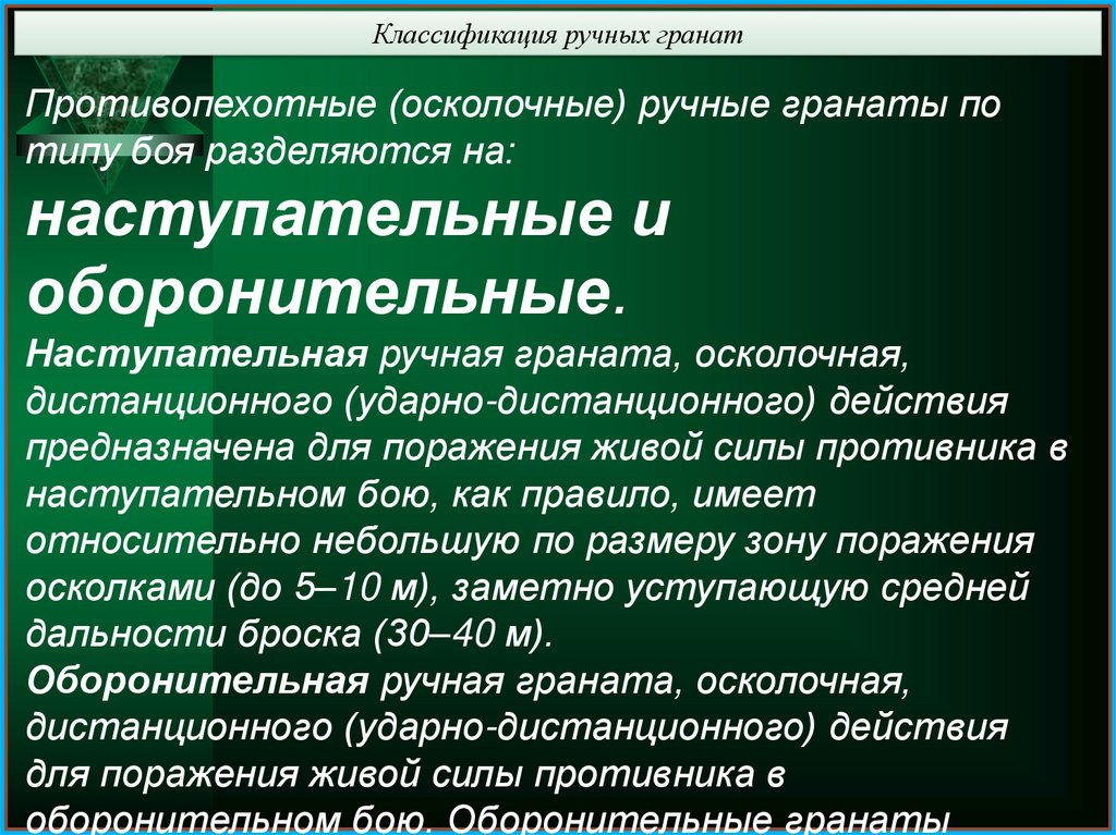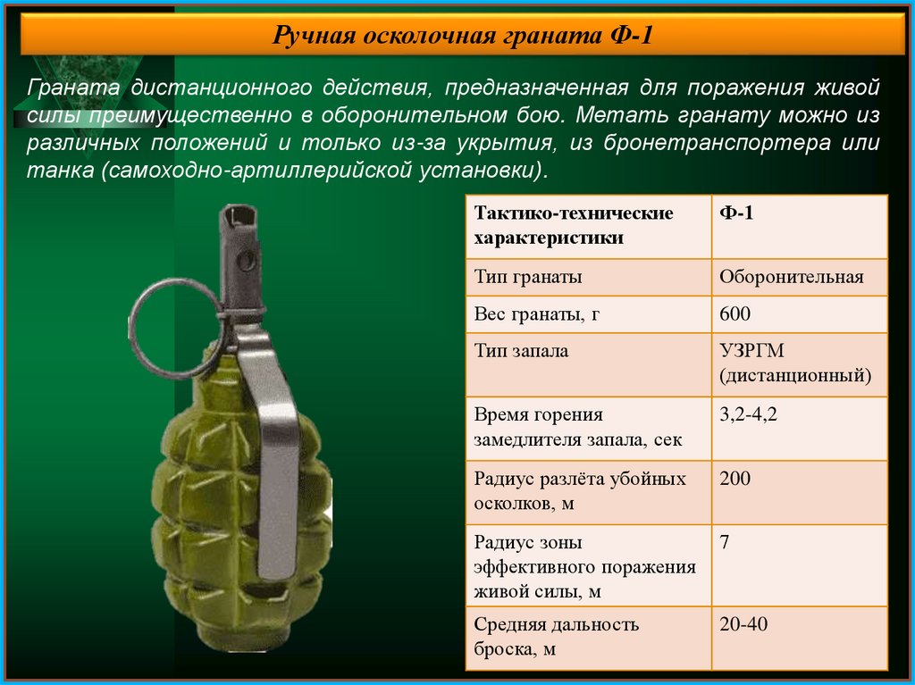 Ручная осколочная граната Ф-1Граната дистанционного действия, предназначенная для поражения живой