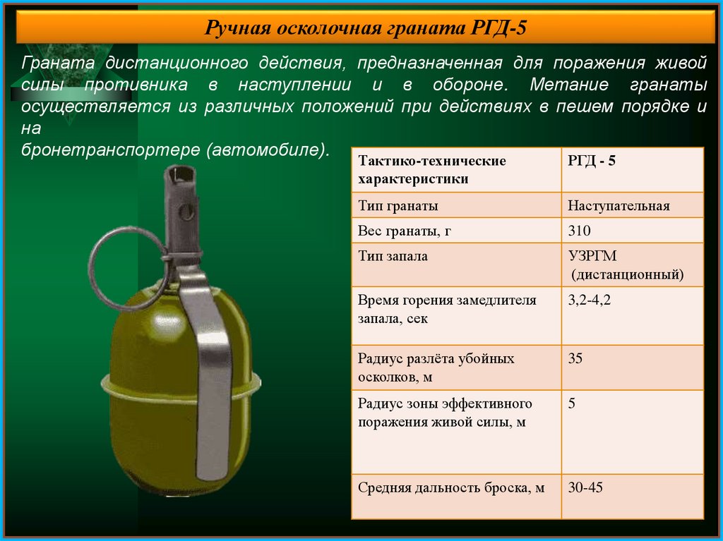 Б) Выучить ТТХ АК-74, РПГ7, Ф-1, РГД-5,РГО,РГН