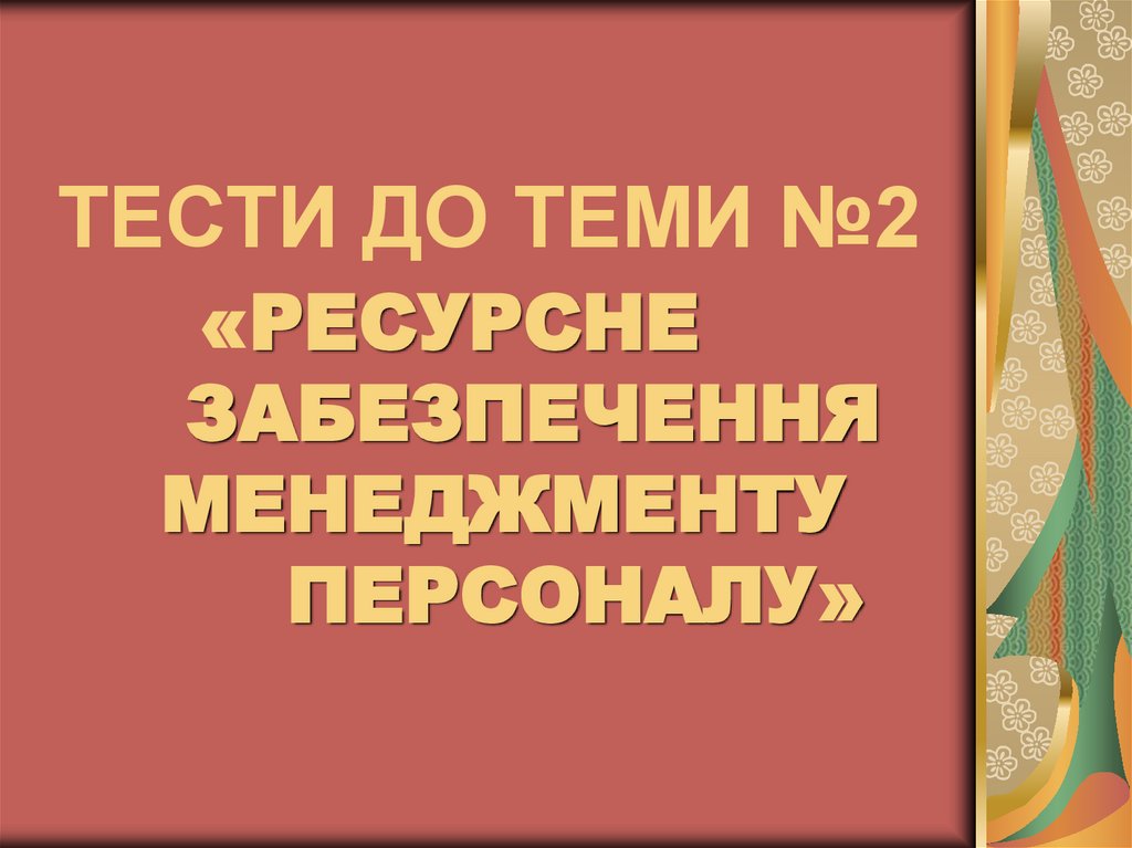 1. ТЕСТИ ДО ТЕМИ №2 «РЕСУРСНЕ ЗАБЕЗПЕЧЕННЯ МЕНЕДЖМЕНТУ ПЕРСОНАЛУ»