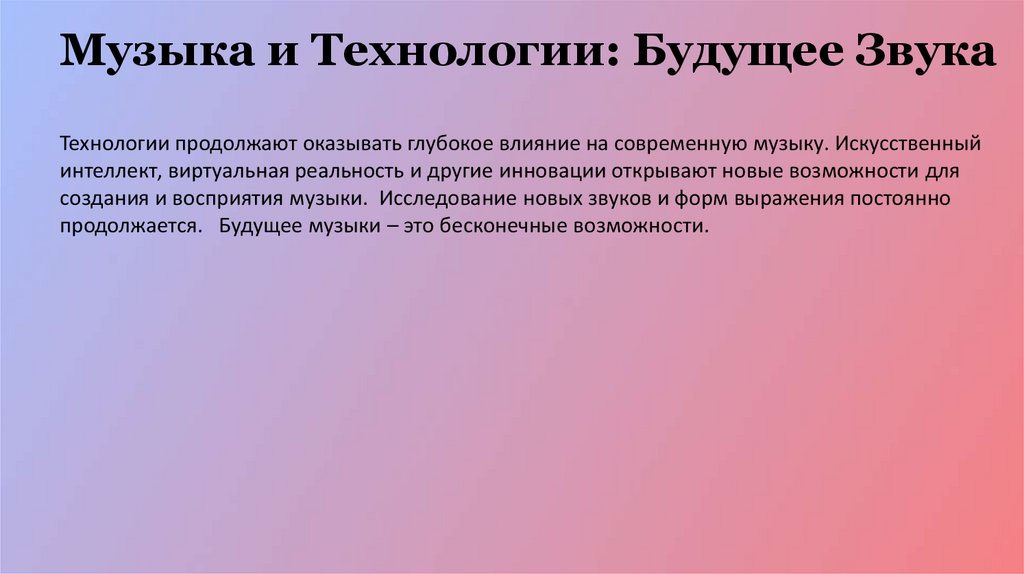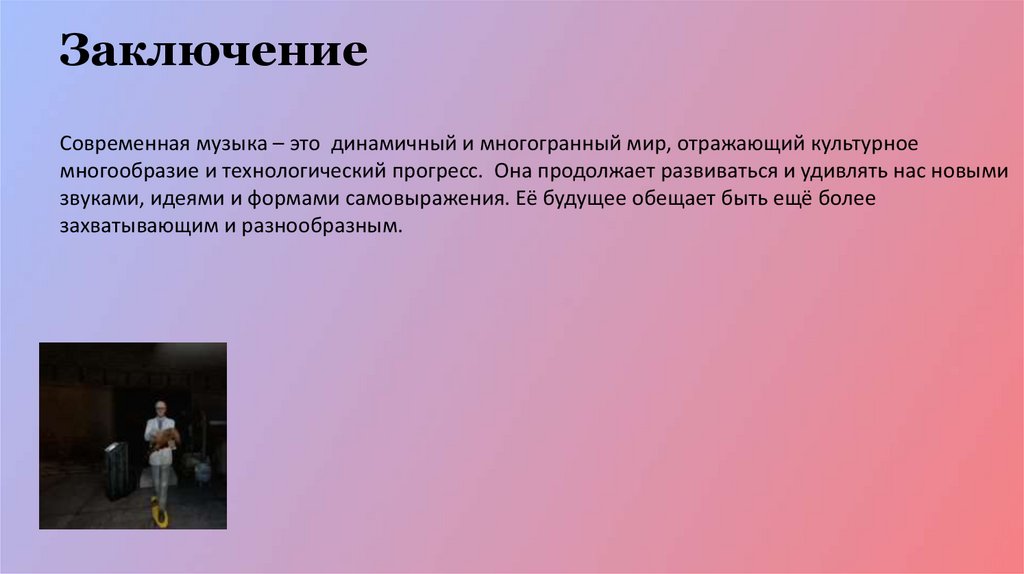 ЗаключениеСовременная музыка – это динамичный и многогранный мир, отражающий культурное